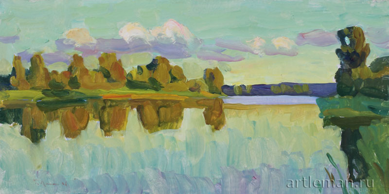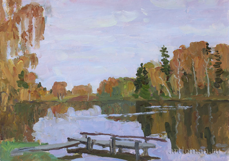 Из-под кисти художника родился романтичный и поэтический пейзаж, наполненный легкими и мелодичными звуками. Так откликается речная гладь на брошенную горсть снега или лесные вершины на пролетевший ветер. Этюд наполнен вдохновением и пробуждает желание воочию увидеть эти прекрасные русские места.